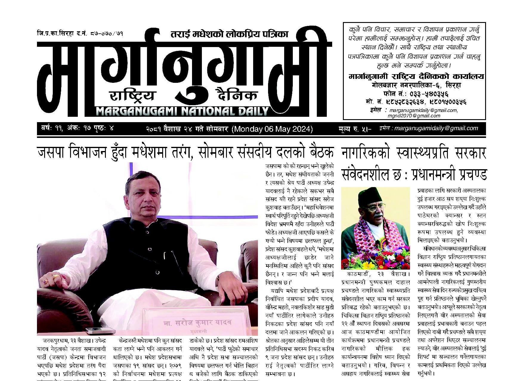 २०८१ वैशाख २४ गते सोमबार (Monday 6 May 2024)