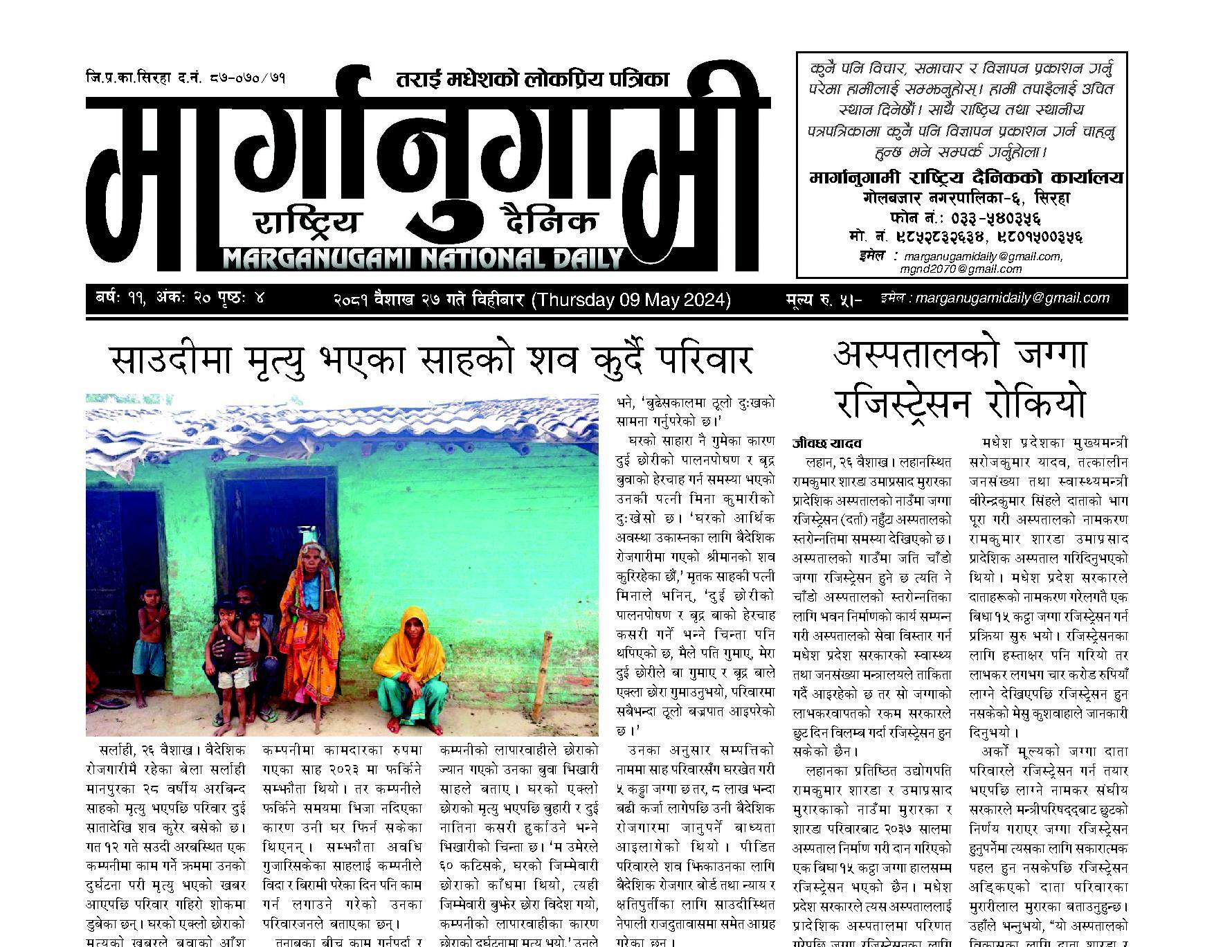 २०८१ वैशाख २७ विहिवार (Thursday 9 May 2024)