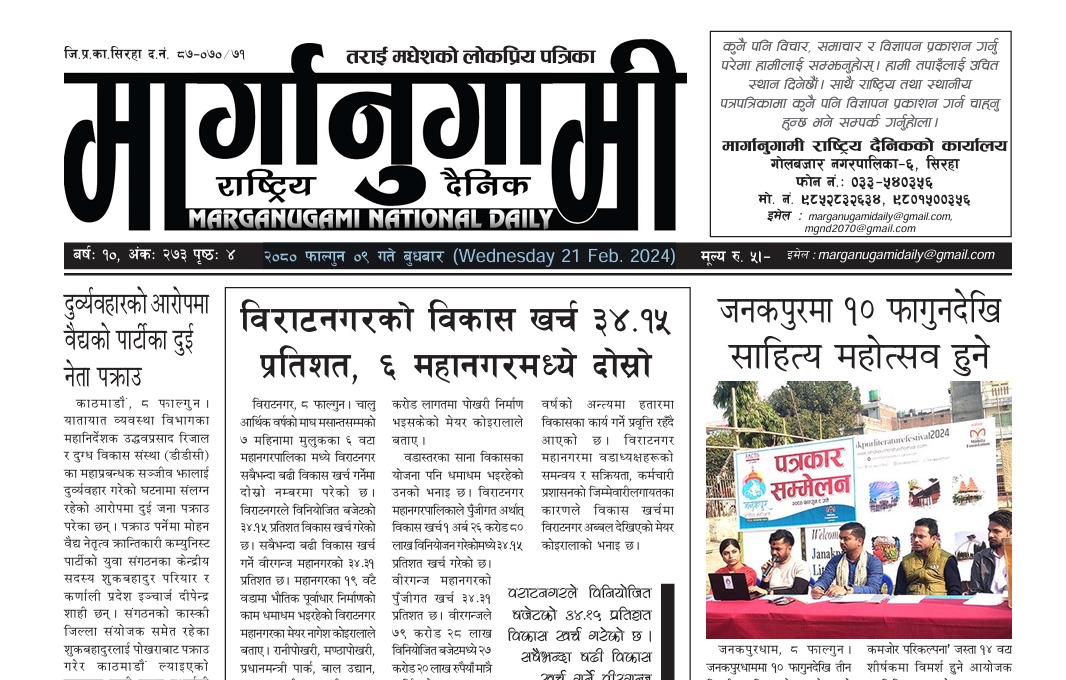 २०८० फाल्गुन ०९ गते बुधबार (Wednesday 21 Feb. 2024)