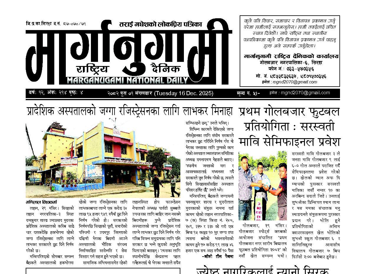 २०८२ पुस ०१ मंगलबार (Tuesday 16 Dec. 2025)