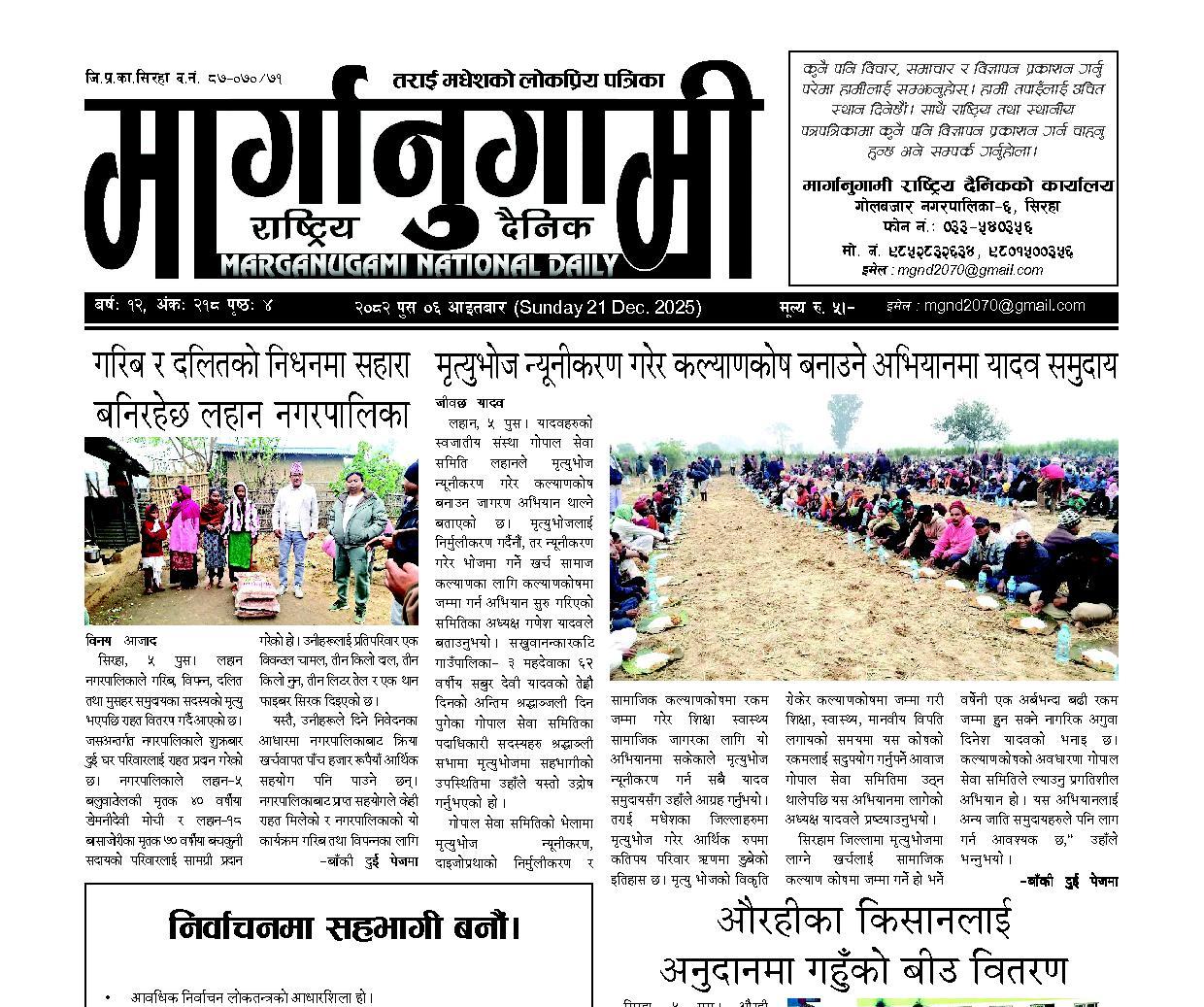 २०८२ पुस ०६ आइतबार (Sunday 21 Dec. 2025)