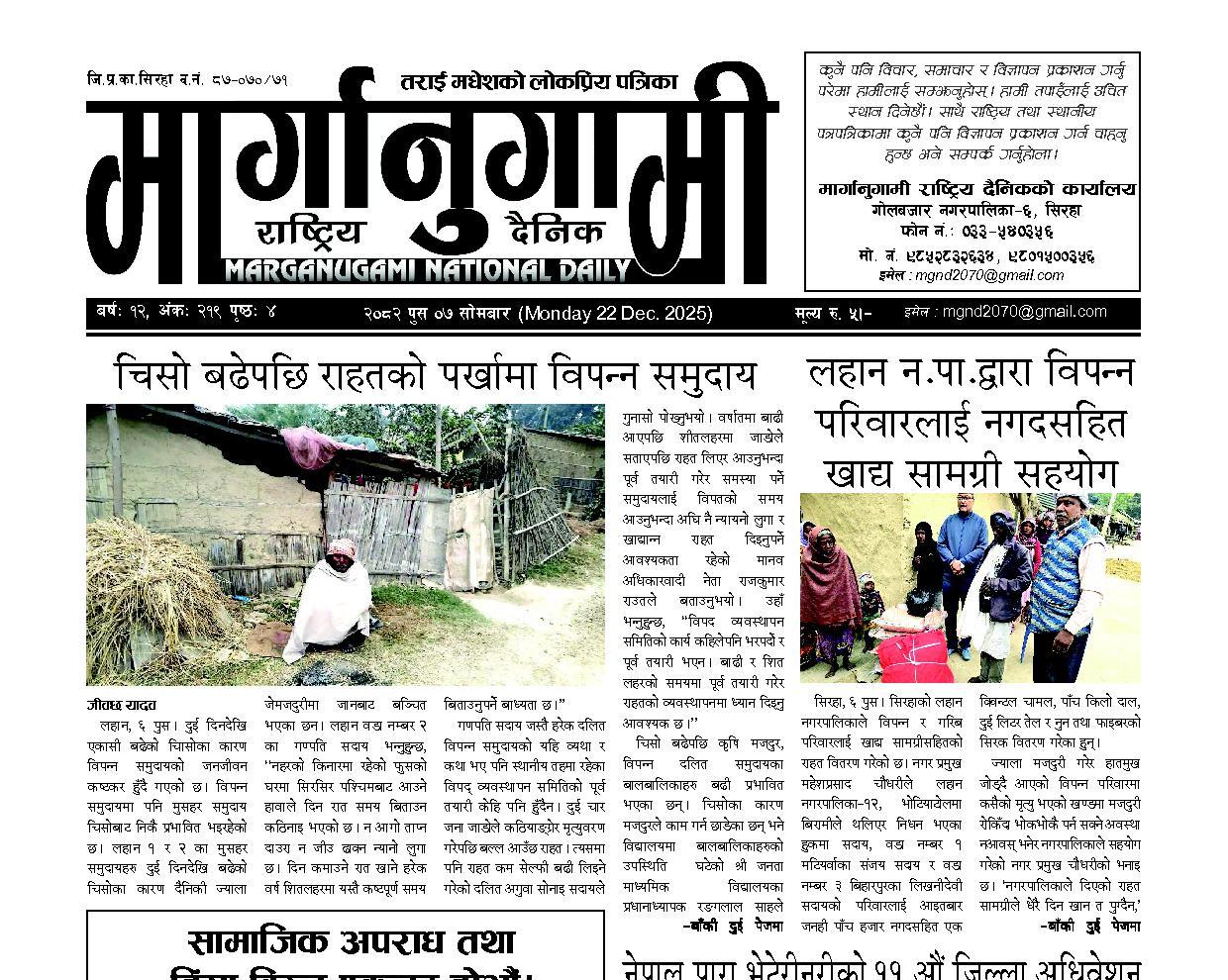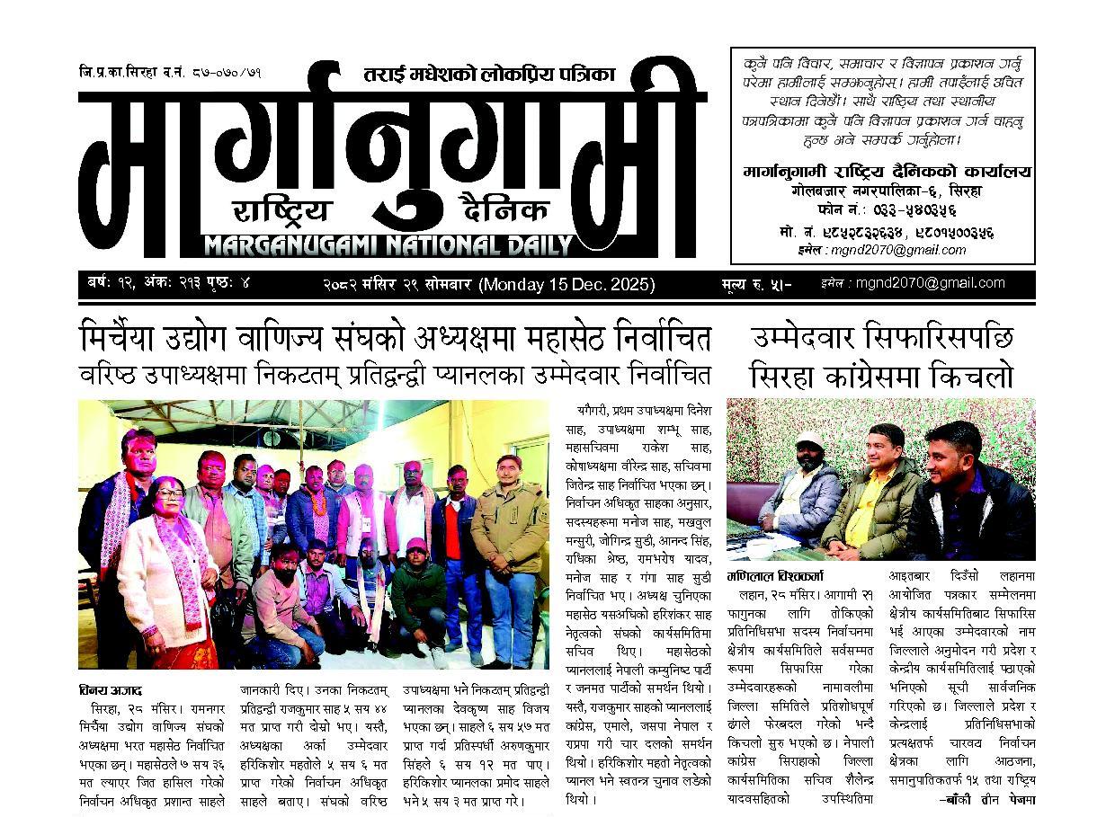 २०८२ मंसिर २९ सोमबार (Monday 15 Dec. 2025)