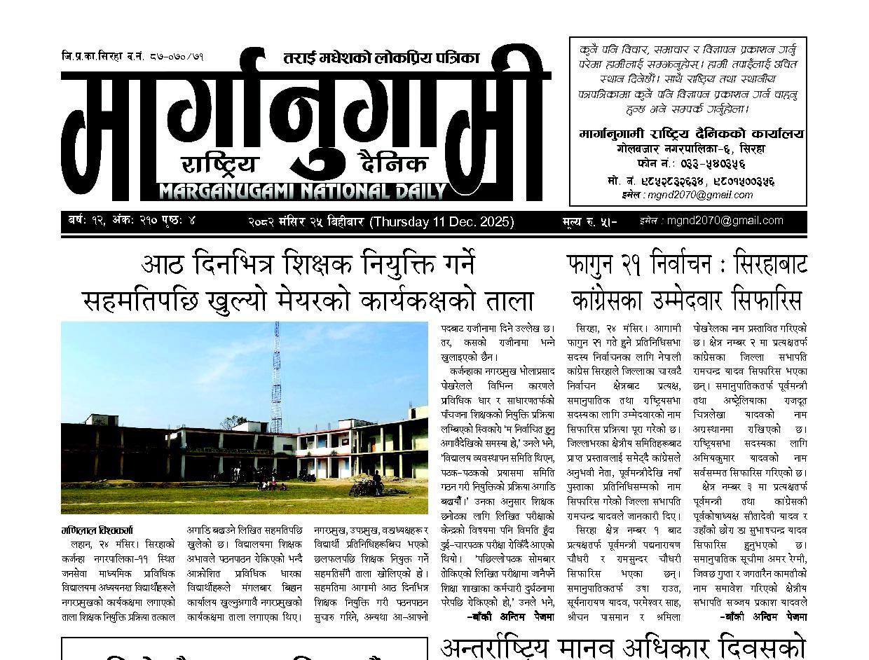 २०८२ मंसिर २५ बिहीबार (Thursday 11 Dec. 2025)