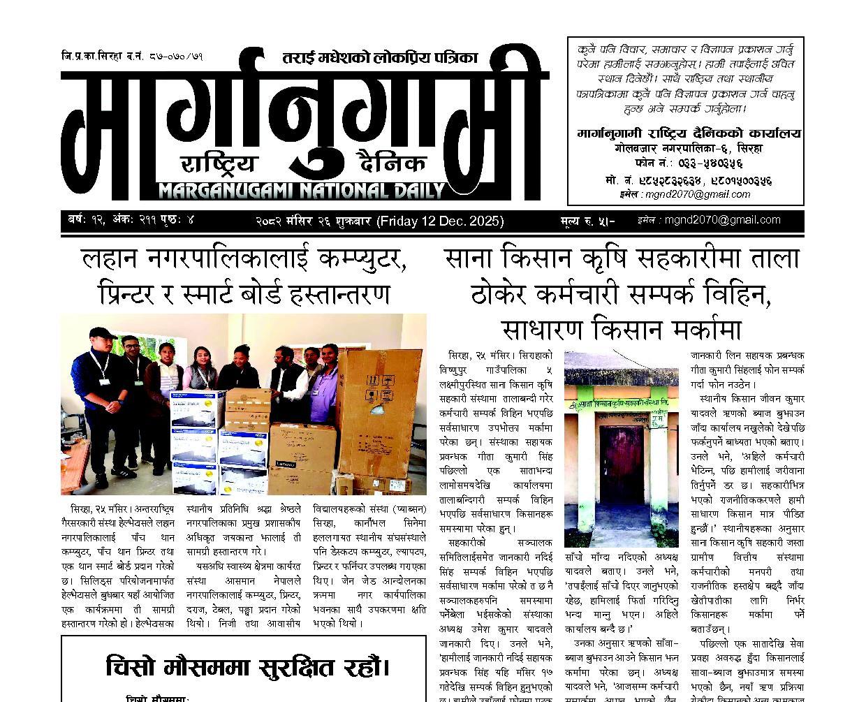 २०८२ मंसिर २६ शुक्रबार (Friday 12 Dec. 2025)