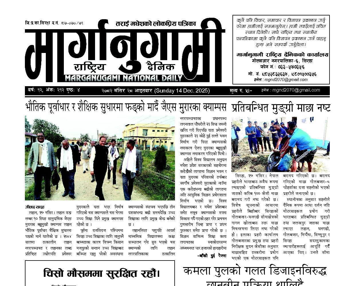२०८२ मंसिर २८ आइतबार (Sunday 14 Dec. 2025)
