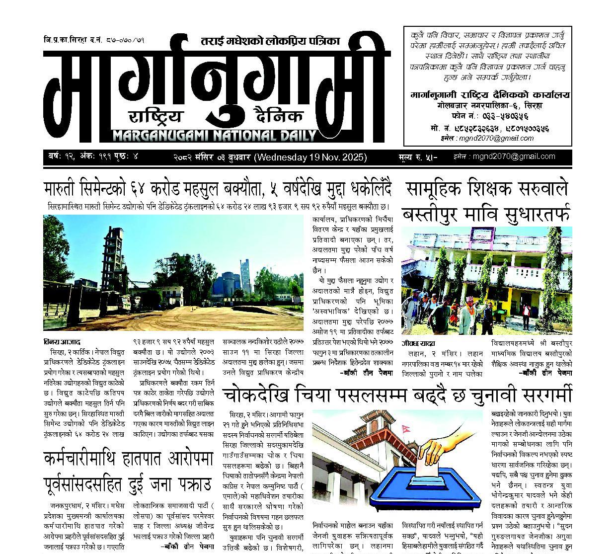 २०८२ मंसिर ०३ बुधबार (Wednesday 19 Nov. 2025)