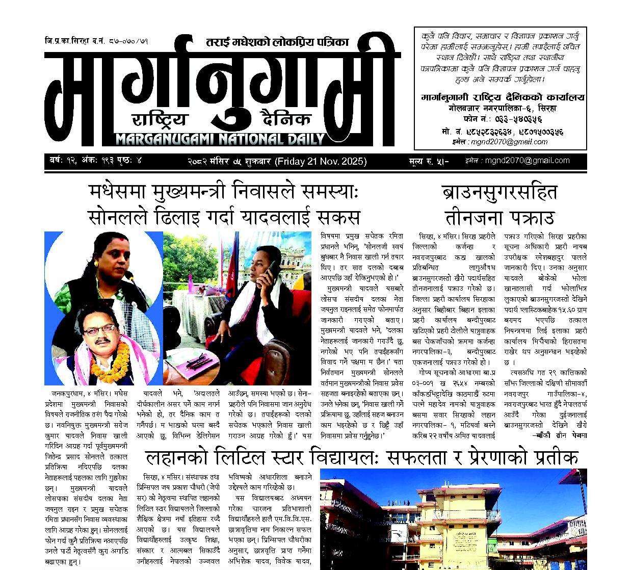 २०८२ मंसिर ०२ मंगलबार (Tuesday 18 Nov. 2025)