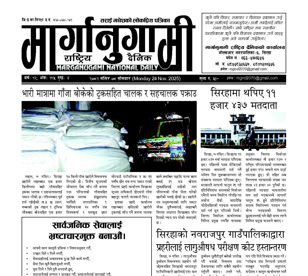 २०८२ मंसिर ०८ सोमबार (Monday 24 Nov. 2025)
