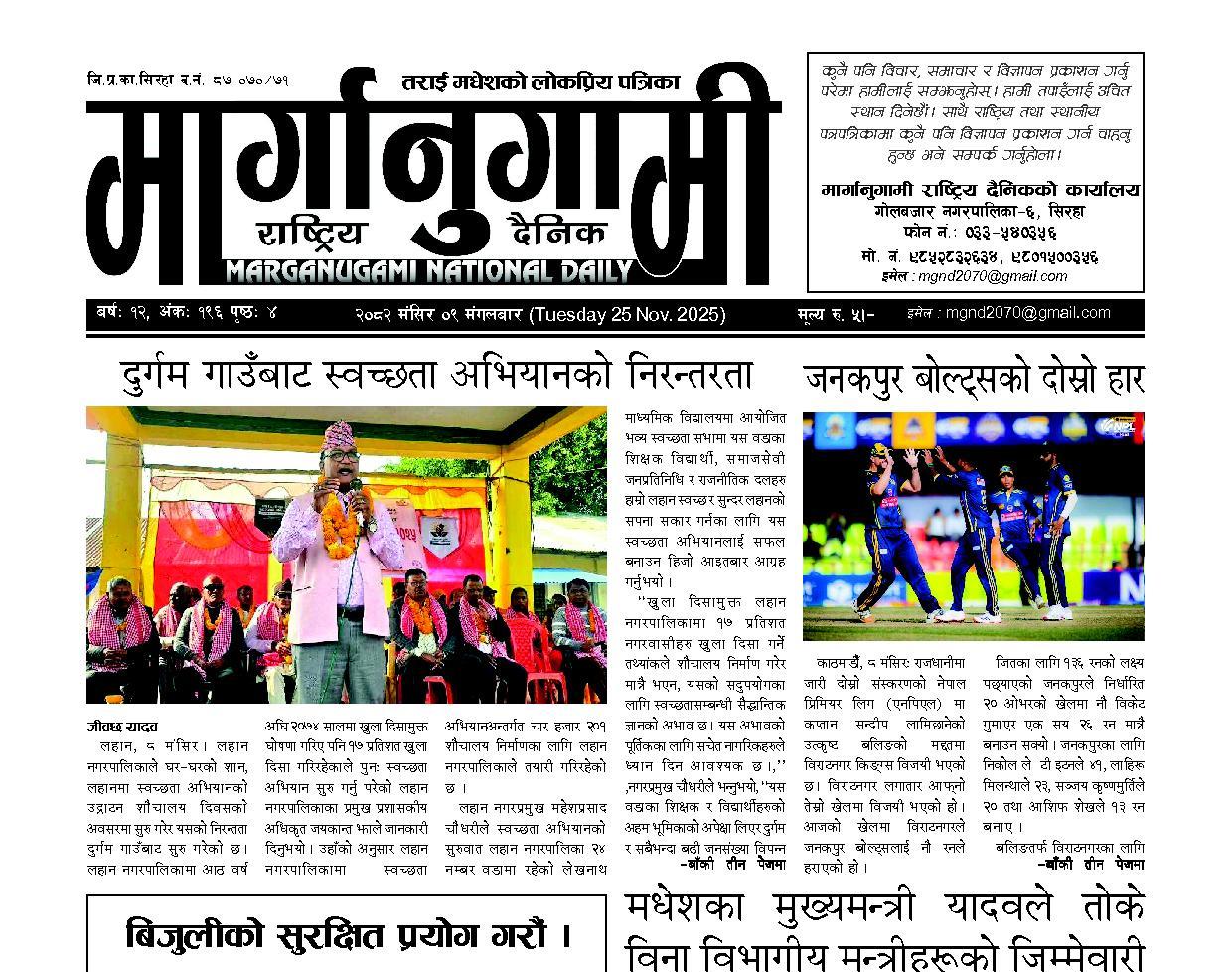 २०८२ मंसिर ०९ मंगलबार (Tuesday 25 Nov. 2025)